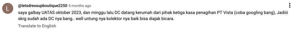 Seperti yang dialami oleh salah satu peminjam yang mengungkapkan bahwa debt collector UATAS baru mendatangi kediamannya setelah 2 tahun galbay.