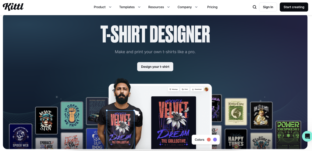 Kalau kamu suka desain baju dengan gaya retro, vintage, atau tipografi keren, Kittl bisa banget dicoba. Aplikasi ini berbasis web dan dilengkapi fitur AI yang bisa bantu generate ide desain. User experience-nya cukup ramah, jadi meskipun butuh sedikit adaptasi, tetap enak dipakai.