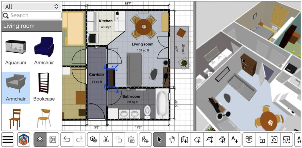 Floorplanner adalah aplikasi berbasis web yang sangat baik untuk membuat denah lantai 2D dan 3D.