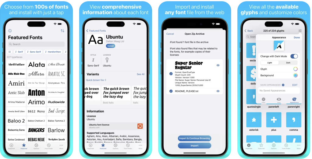 Buat pengguna iPhone, iFont jadi aplikasi andalan buat download dan install font dari Google Fonts, DaFont, sampai FontSpace. Instalasinya lewat pengaturan profil, jadi tetap aman.