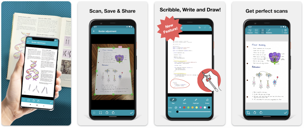 Kalau kamu penggemar nge-scan catatan atau tugas kuliah, Notebloc sangat cocok. Dia bakal otomatis menghilangkan bayangan dan merapikan hasil scan. Kelebihannya, scanner bebas watermark, koreksi perspektifnya otomatis, dan bisa menyimpan file dalam format PDF atau JPG. Pastinya cocok buat pelajar atau mahasiswa.