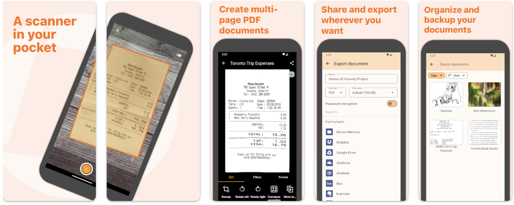 Aplikasi yang satu ini terkenal karena kecepatannya dalam scanning. Cocok buat kamu yang suka buru-buru dan pengennya serba cepat. Karena Genius Scan ini punya beberapa kelebihan seperti scan cepat dengan auto crop, simpan scan jadi file PDF berganda dan fitur smart folder.