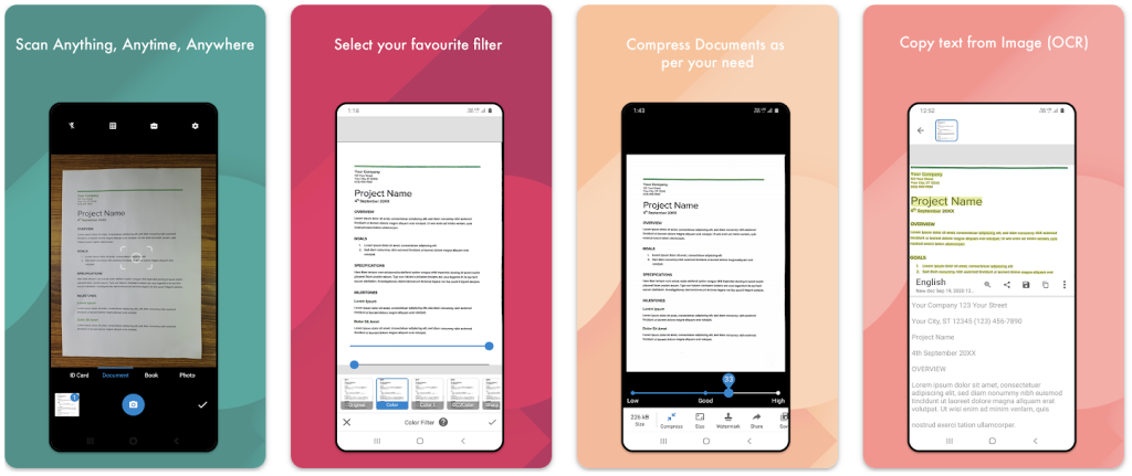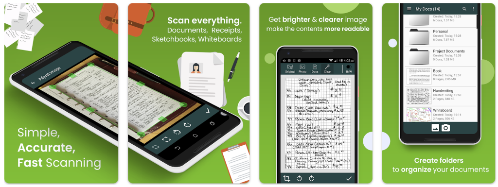 Kalau kamu pengen aplikasi ringan yang nggak bikin HP lemot, Tiny Scanner bisa jadi pilihan tepat. Simpel dan responsif buat scan dokumen sehari-hari. Kelebihan dari Tiny Scanner adalah selain ukurannya yang kecil, opsi warna dan greyscale-nya ada banyak. Tiny Scale juga bisa bikin kamu meng-export ke PDF dengan password, jadi udah pasti aman banget!
