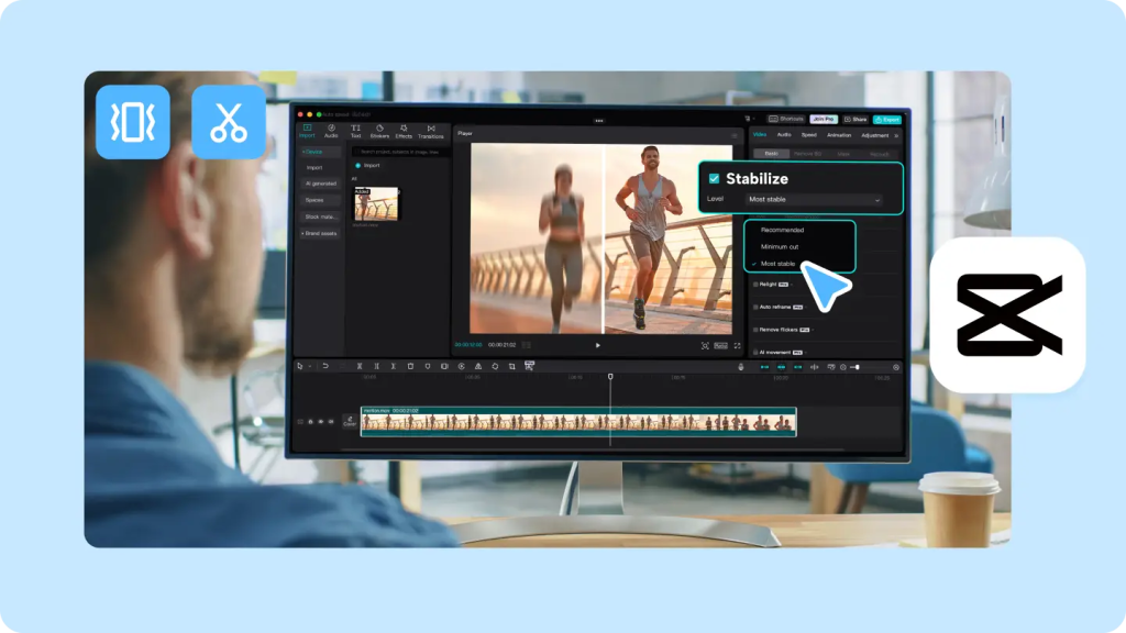 Siapa sih yang nggak kenal CapCut? Aplikasi ini jadi andalan banyak content creator, khususnya pengguna TikTok dan Instagram. Fitur stabilizer di CapCut bisa langsung dipakai tanpa perlu setting ribet. Jadi, selain bikin video lebih stabil, kamu juga bisa langsung edit pakai filter, musik, dan efek kekinian.
