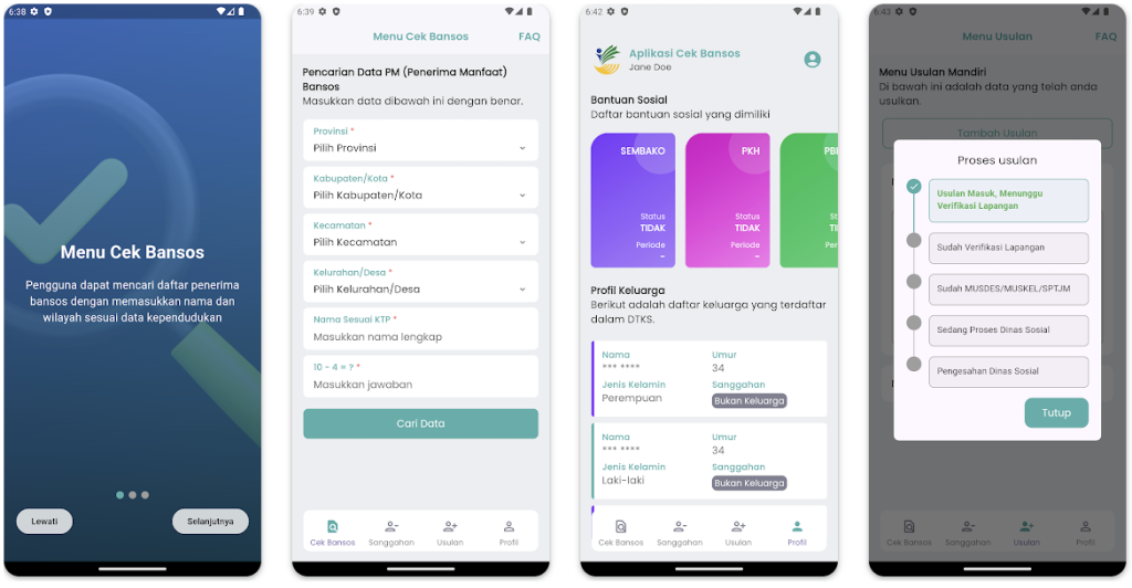 Aplikasi Cek Bansos bisa dipakai untuk melihat kepesertaan bansos, melihat penerima di sekitar wilayah administrasi, melakukan sanggahan, dan mengusulkan diri sendiri/tetangga yang dianggap layak.