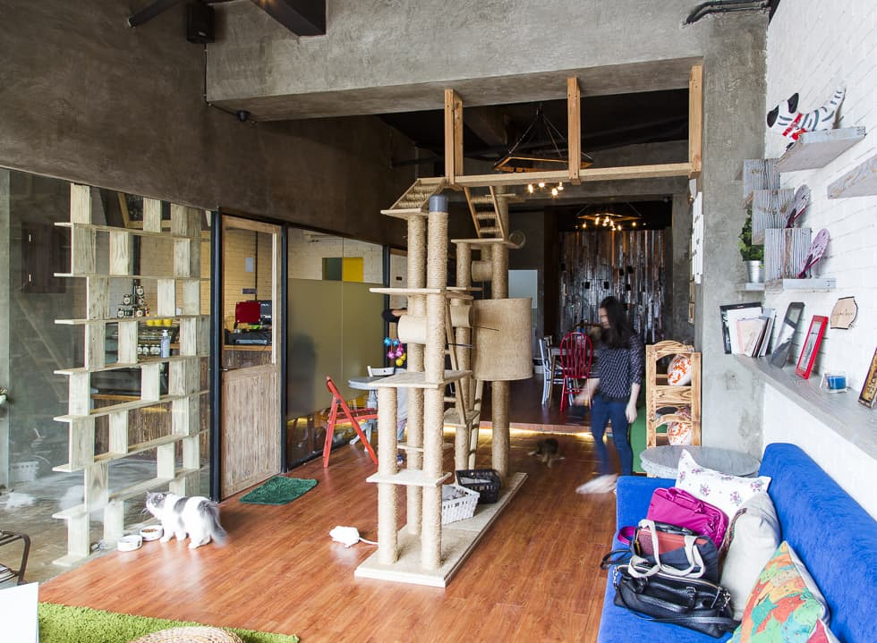 Interior kafe harus mendukung dua hal: kenyamanan pengunjung dan kebutuhan kucing. Sediakan cat tree, area bermain, serta tempat beristirahat. Gunakan furnitur yang aman untuk kucing agar mereka bebas bergerak tanpa membahayakan diri.