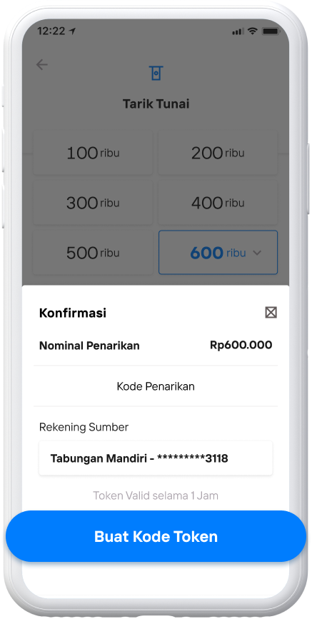 - Cek kembali jumlah uang yang akan ditarik, lalu pilih “Buat Kode Token”.