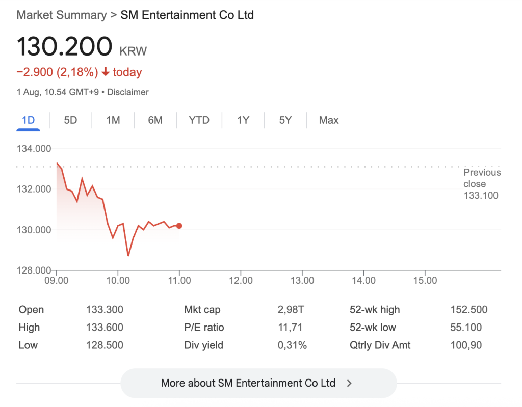 Sekilas Tentang Harga Saham SM Entertainment (Update per 30 Juli 2025)