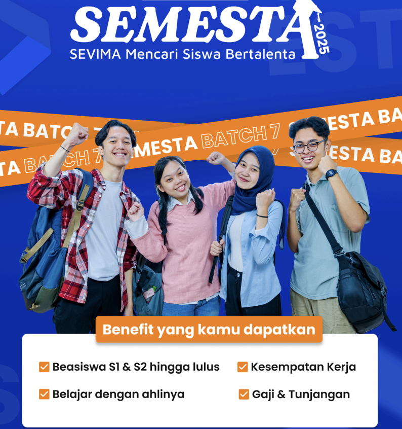 1. Beasiswa SEMESTA SEVIMA: Kuliah Gratis + Gaji Selama Studi