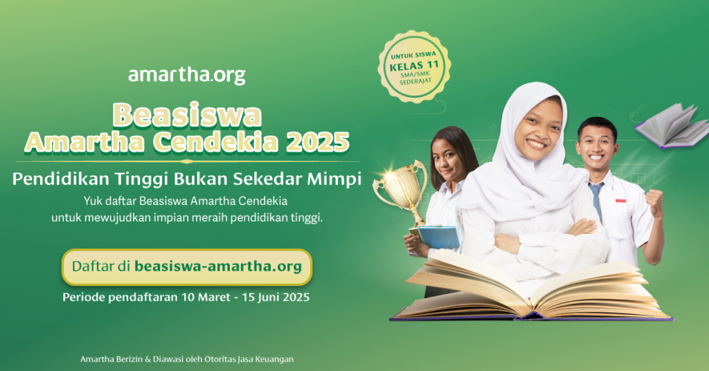 Buat kamu yang masih duduk di bangku SMA/SMK kelas XI, beasiswa Amartha Cendekia ini bisa jadi peluang emas. Pendaftaran dibuka sampai 15 Juni 2025, jadi masih ada waktu buat daftar kalau kamu belum sempat. Beasiswa ini bertujuan membantu siswa berprestasi dari keluarga prasejahtera agar tetap bisa lanjut sekolah dan kuliah nantinya.