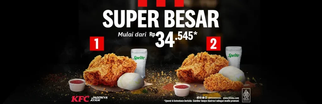 - Super Besar 2 (2 Chicken + Rice + Sprite): Rp45.455