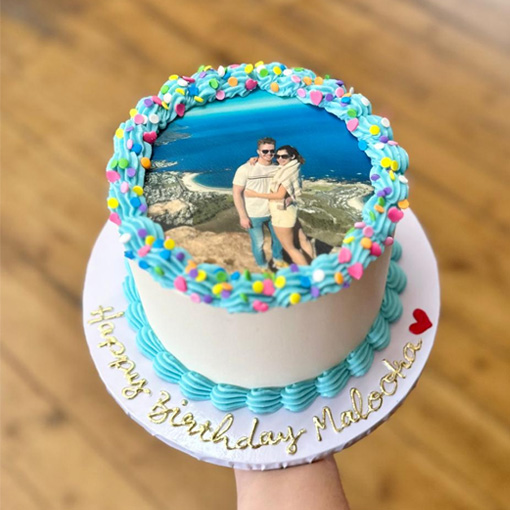 Bisa cetak foto kalian berdua di atas kuenya! Romantis dan memorable, cocok buat surprise yang lebih personal.