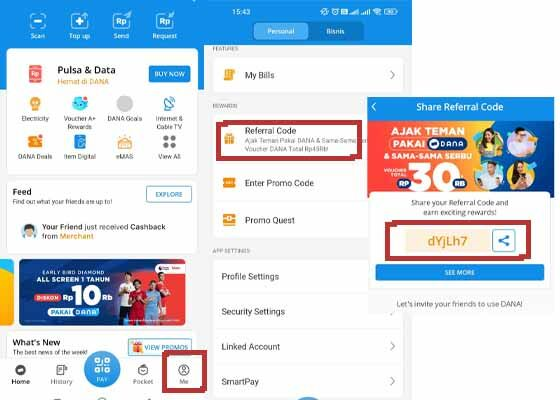 Kalau kamu belum tahu di mana letak kode referral DANA, berikut langkah-langkahnya: