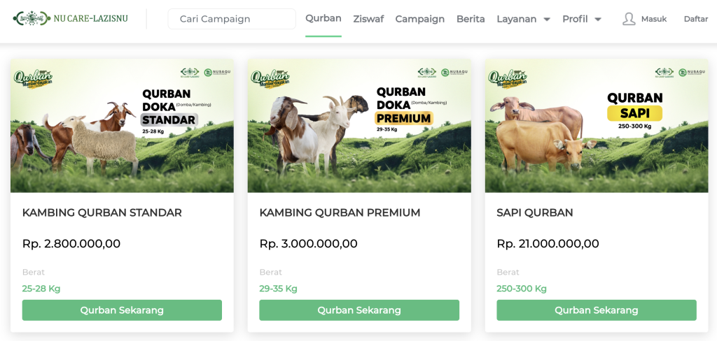 Platform ini udah terkenal banget dan jadi andalan banyak orang buat kurban online. Di BAZNAS, hewan kurban dibeli langsung dari peternak binaan, terus disembelih dan disalurkan ke desa-desa yang minim pekurban.