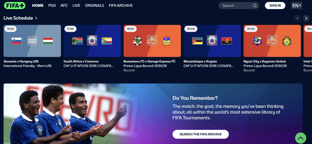 Poin plusnya, FIFA+ nggak cuma untuk pertandingan elite. Liga-liga kecil dan pertandingan nasional yang jarang tayang di TV pun bisa kamu temukan di sini.