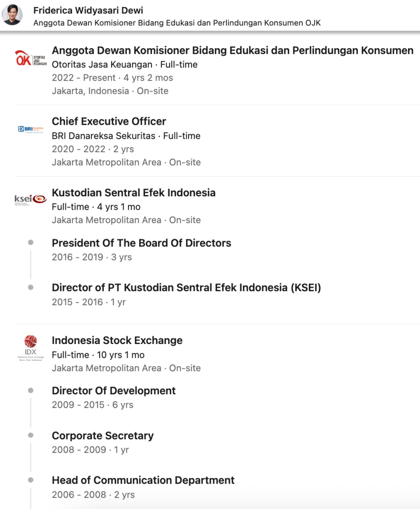 - KSEI (2015–2019): Direktur hingga Direktur Utama