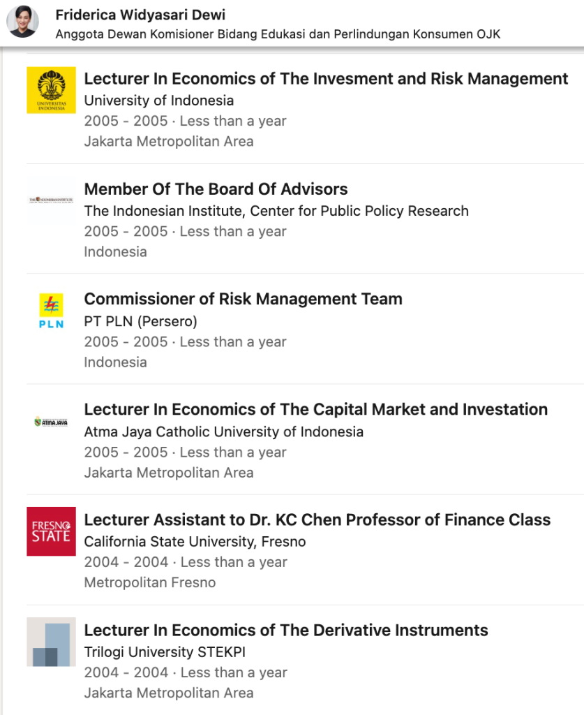 Sebelum dan sesudah studi lanjut, ia juga aktif sebagai dosen dan dosen tamu di berbagai kampus seperti UI, Atma Jaya, dan Universitas Trilogi. Jadi, dunia edukasi bukan hal baru buatnya, dan ini nyambung banget dengan peran OJK dalam literasi keuangan nasional.