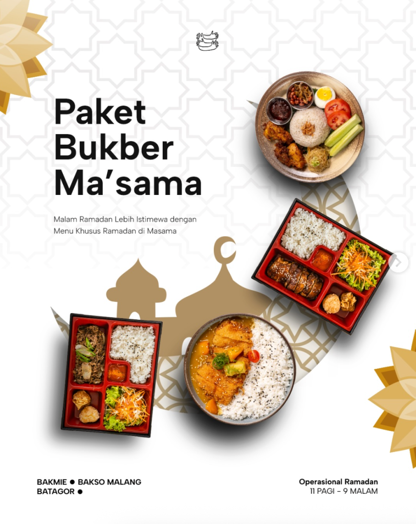 Rayakan momen buka puasa lebih hangat bareng Paket Bukber Ma’sama! Spesial di bulan Ramadan, Ma’sama menghadirkan menu eksklusif yang cuma tersedia selama periode terbatas. Pilihan hidangan lengkap ini siap bikin momen bukber bareng keluarga, sahabat, atau orang tersayang jadi makin berkesan!