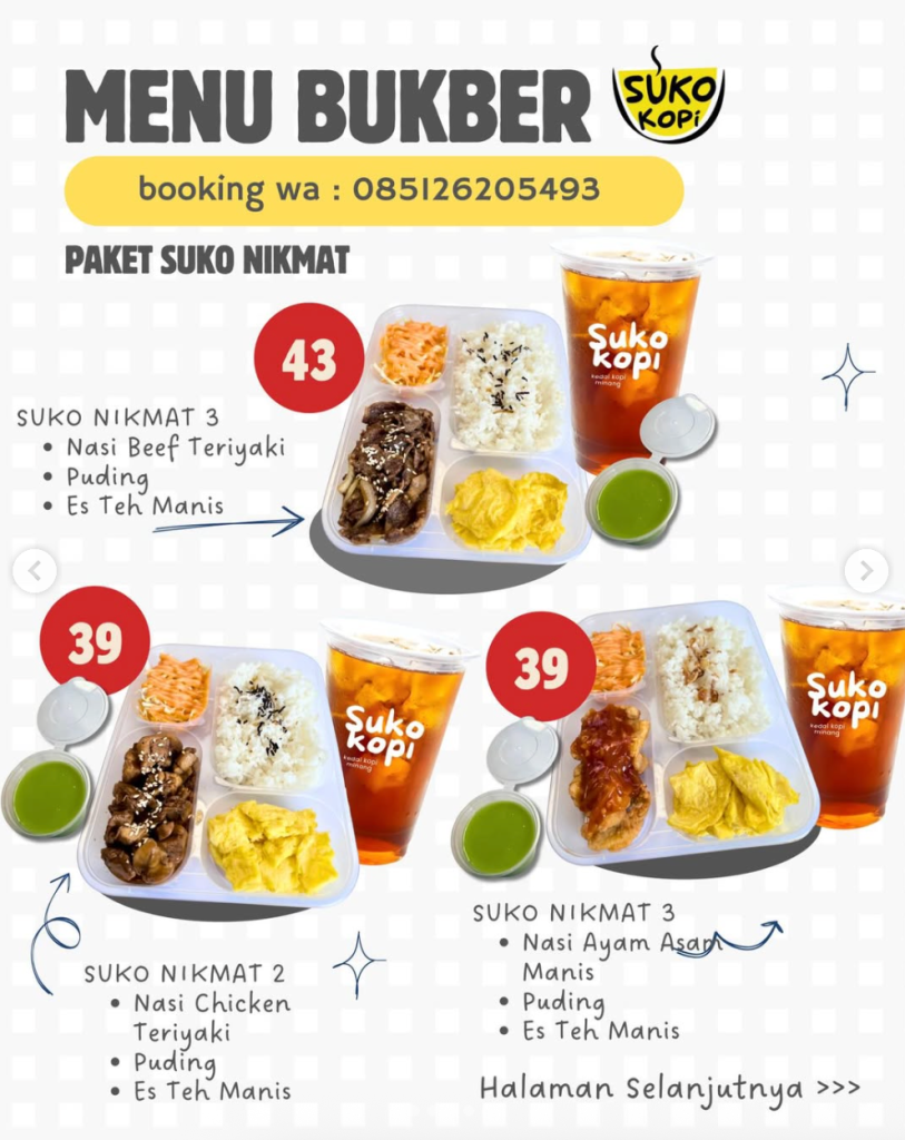 Rayakan momen buka puasa lebih seru bareng Menu Ramadan Suko Kopi Padang! Ramadan tahun ini, Suko Kopi hadir dengan pilihan paket bukber lengkap yang siap bikin momen kebersamaan bareng keluarga, sahabat, atau rekan kerja jadi makin hangat dan praktis.