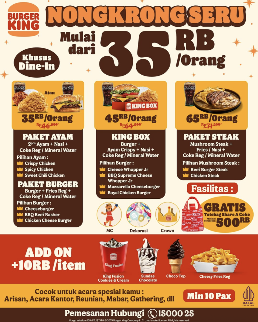 📍 Lokasi: Seluruh outlet Burger King (khusus Dine-In, minimal 10 orang)