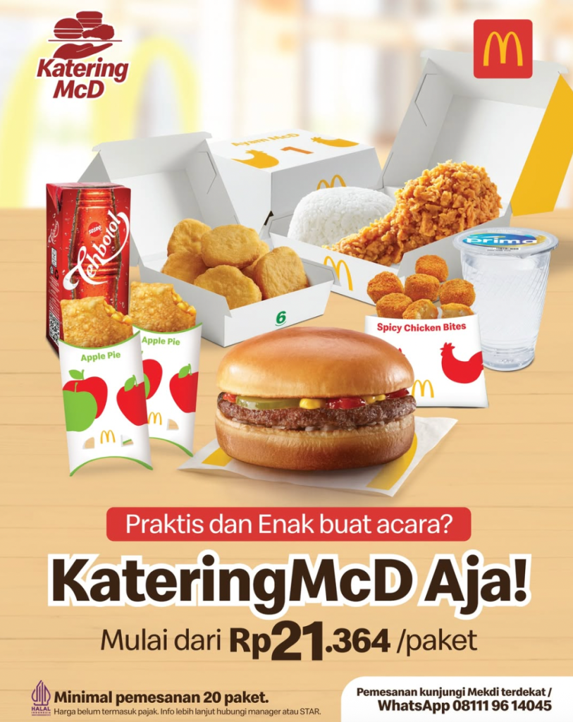 - Minimal pemesanan paket KateringMcD: 20 pax
