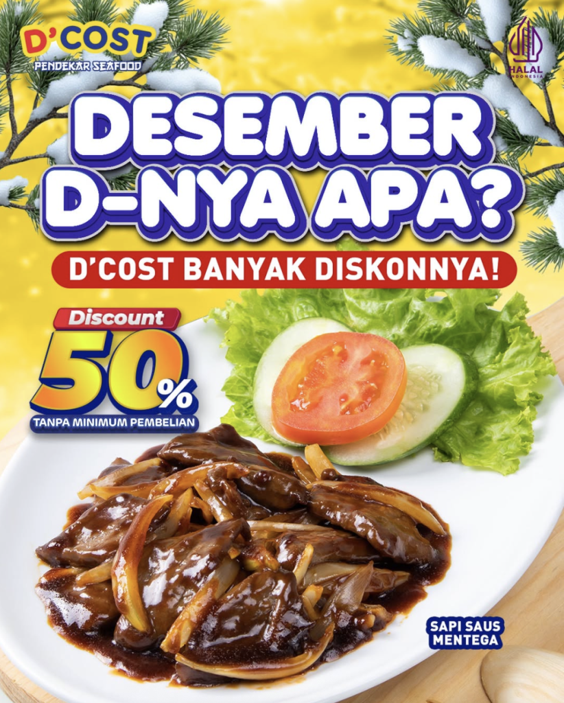 Bulan Desember makin seru bareng D’Cost! Buat kamu yang doyan makan enak tanpa bikin dompet menjerit, ada kabar gembira nih. Mulai dari diskon gede hingga cashback hingga 30% ada buat kamu! Yuk, intip daftar promo D’Cost yang sayang banget buat dilewatkan bulan ini!
