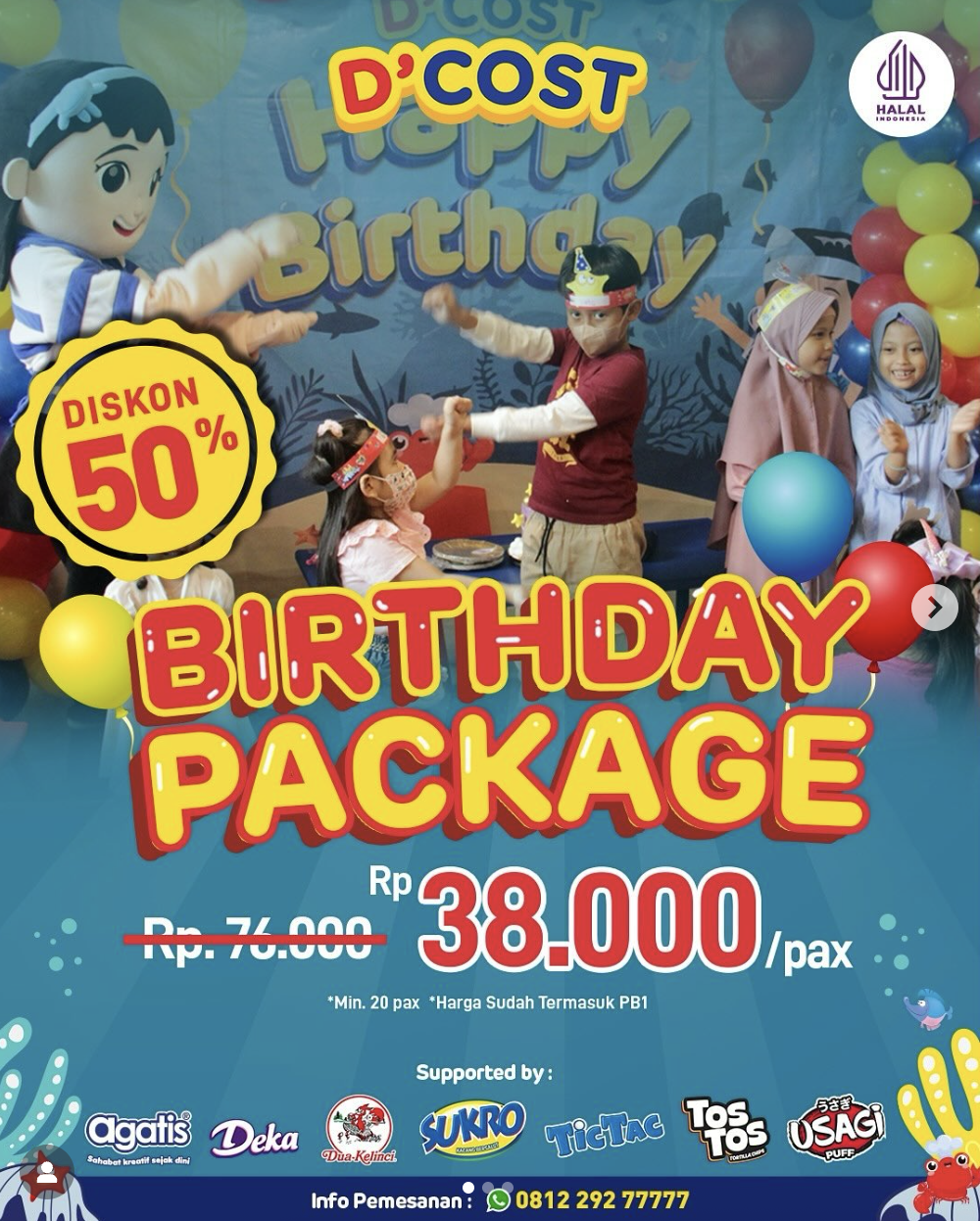 🤑 Diskon: 50% paket ulang tahun, cuma Rp38.000/pax (dari Rp76.000).