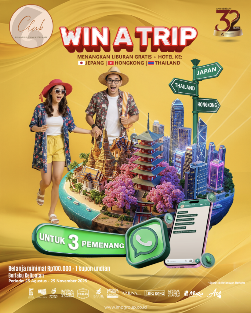 Rayain momen seru bareng Imperial Group! 🤩 Belanja sambil kumpulin kupon undian, bisa bawa kamu liburan ke Jepang, Hongkong, atau Thailand, lho! ✈️ Semakin sering belanja, semakin besar peluang kamu menang.