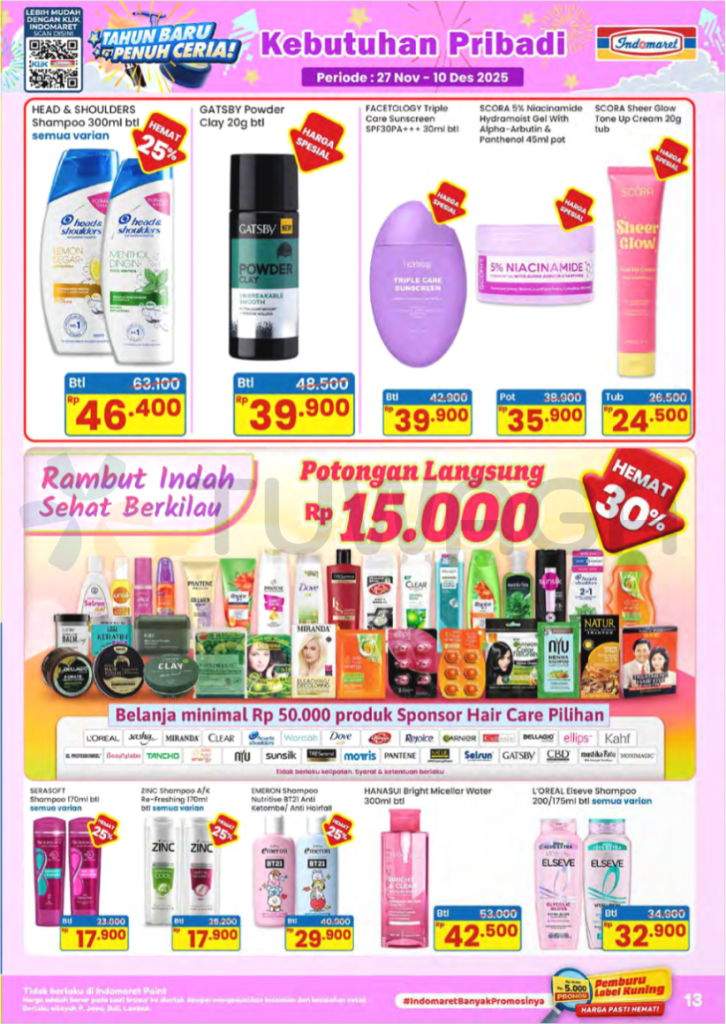 - Head & Shoulders Shampoo 300ml (all variants): Rp46,400 (after 25% off, original price: Rp63,100)