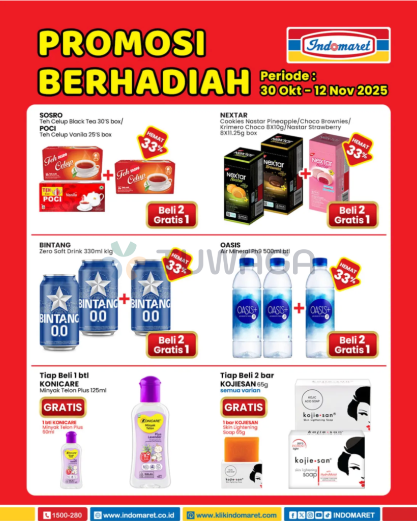 Kalau kamu suka smart shopping, periode Promo Indomaret 30 Oktober – 12 November 2025 ini jangan sampai terlewat. Mulai dari kebutuhan harian sampai produk bayi, semua bisa kamu dapat dengan harga super hemat, bahkan bisa dapet bonus dan tebus murah juga! 🛍️