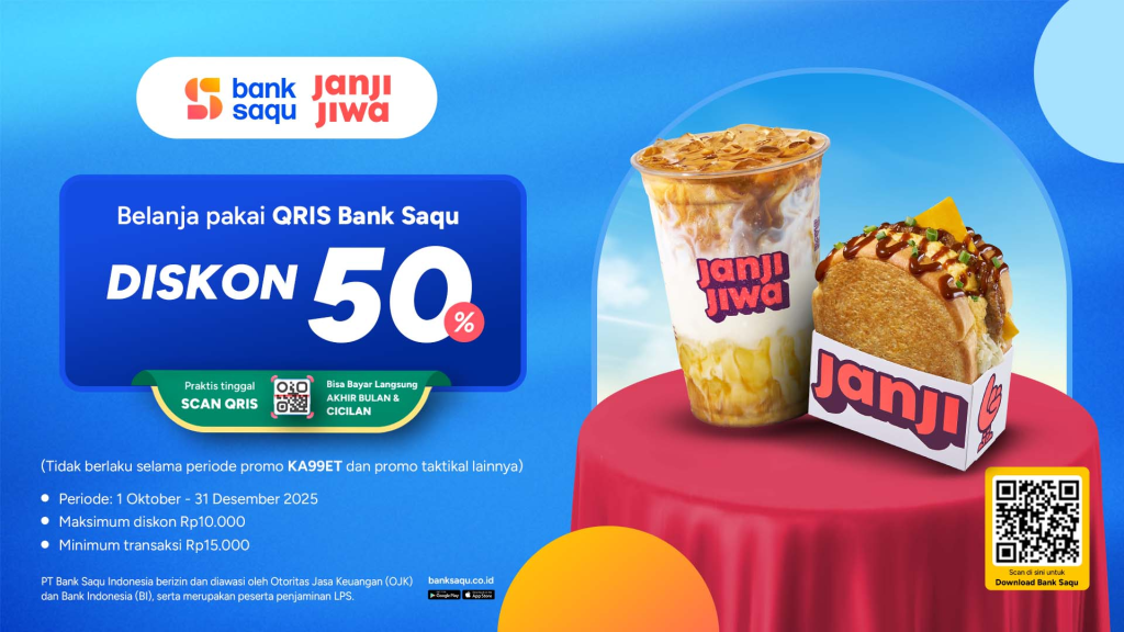 Tenang, Janji Jiwa siap jadi penyelamat kamu sepanjang Oktober ini! 🎉 Mulai promo Janji Jiwa dari Superbank sampai cashback spesial dari Bank Jago & Saqu yang bikin perut kenyang tapi dompet tetap aman~ 🧋🥪💸