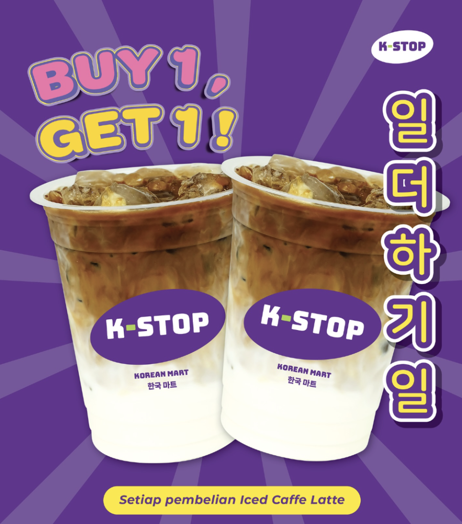 Rayain momen ngopi seru bareng temen, pacar, atau keluarga di K-STOP! Nikmati promo Buy 1 Iced Caffe Latte, Get 1 Free seharian sepanjang bulan Agustus. Yuk, rasakan vibes ngopi ala Korea sambil nikmatin kopi enak di K-STOP!