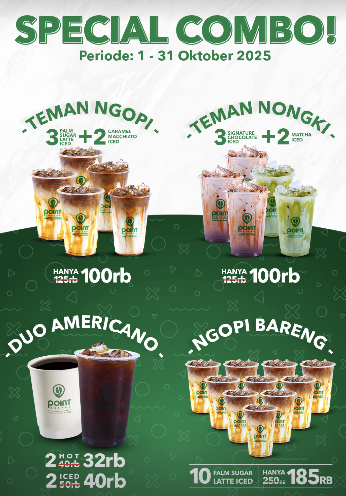 Bulan Oktober ini, ngopi makin seru bareng promo Point Coffee yang bisa bikin dompet kamu tetap aman. Dari diskon R 5 Ribu, hingga bonus, semua ada.