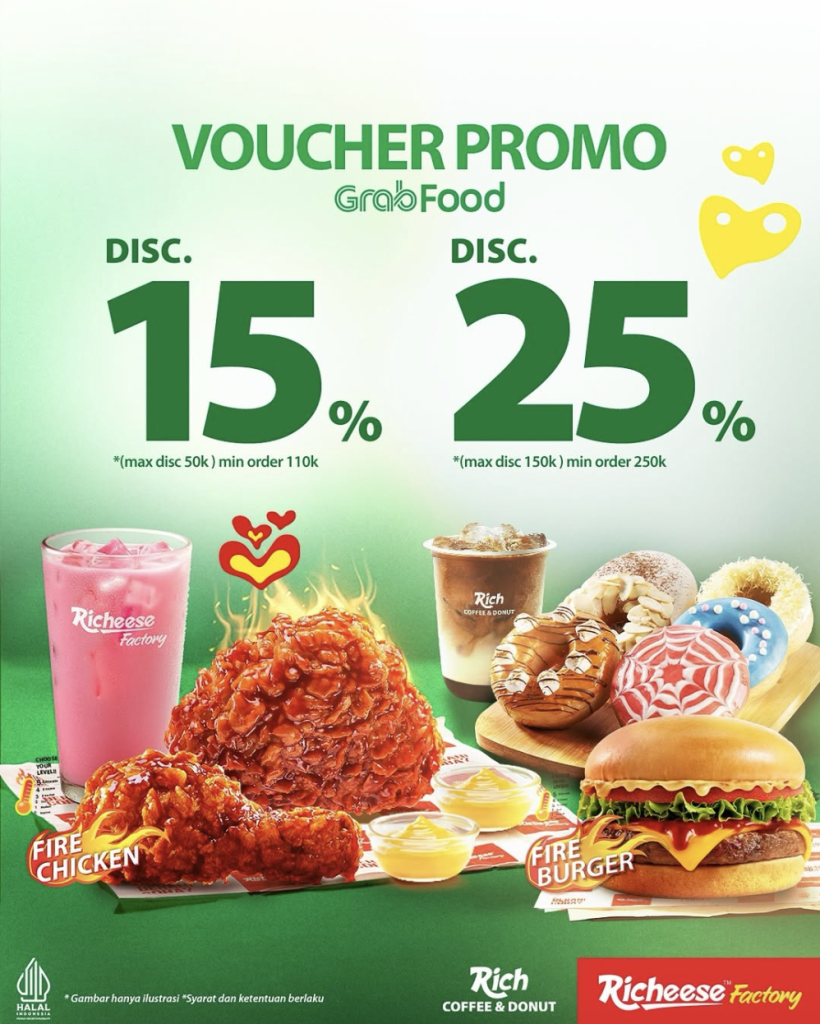 Rayain gajian makin hemat bareng Richeese Factory! 🧀 Pesan menu favorit via GrabFood dan nikmatin diskon spesial yang bikin kantong aman tapi perut tetap kenyang.