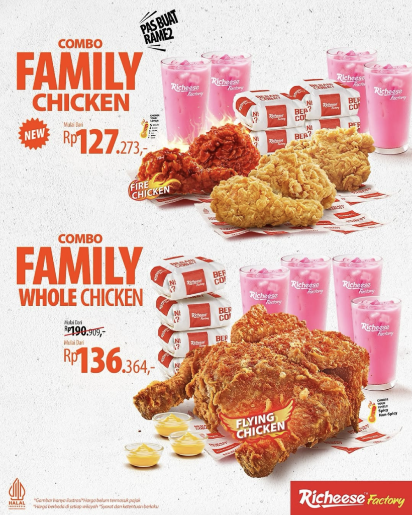 Rayain momen seru bareng keluarga dan sahabat di Richeese Factory! 🍗 Nikmatin Combo Family yang bikin perut kenyang dan hati senang, mulai dari cuma 30 ribuan/orang aja. Bagi rasa, bagi tawa, dan pastinya… bagi kenyang juga!