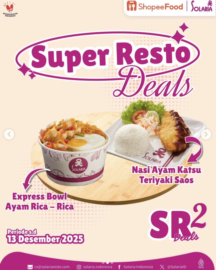 Promo Solaria Desember 2025 bikin makan kamu makin seru dengan diskon, cashback, dan paket hemat. Jangan sampai kehabisan, ya!