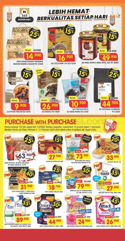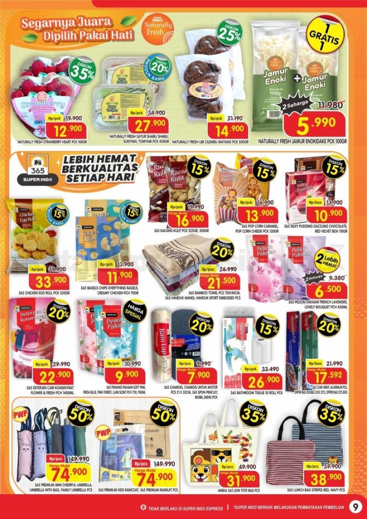 Promo Superindo terbaru 2026 pada bagian ini berisi 7 produk merek internal Super Indo (365) dengan potongan harga langsung: