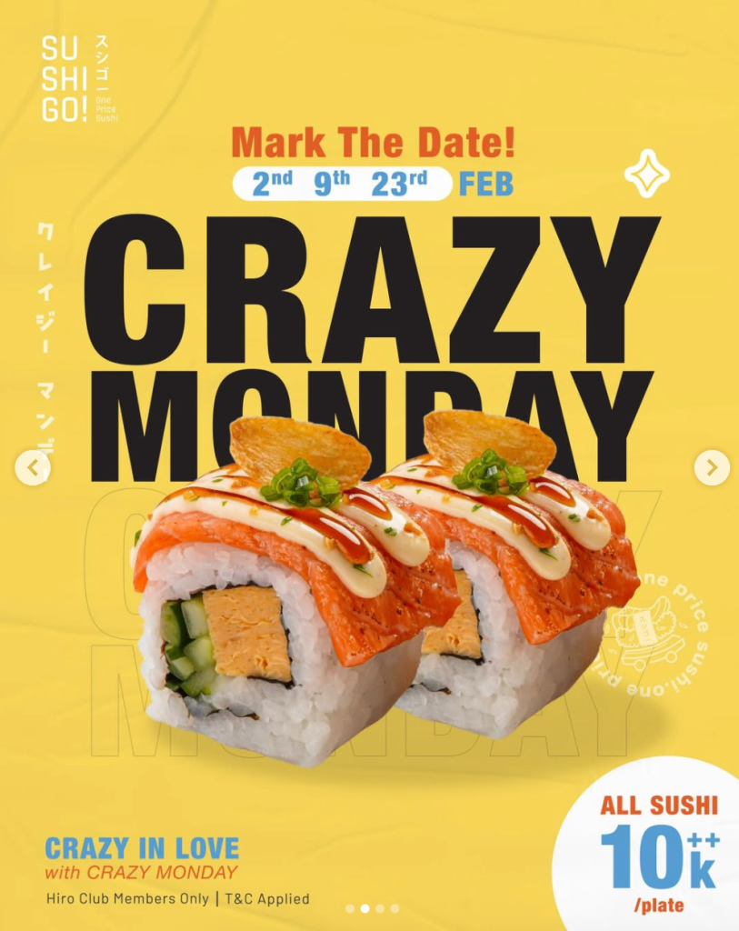 Cocok buat kamu yang ingin lunch hemat atau hangout santai tanpa over budget. Promo Crazy Monday khusus untuk HIRO Club Members.