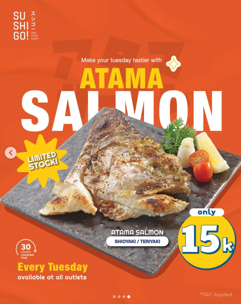 - Atama Salmon (Shioyaki / Teriyaki) hanya Rp15.000