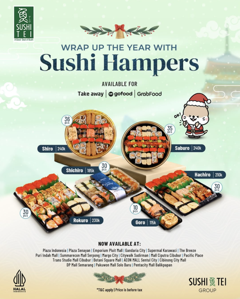 📍 Lokasi: Seluruh outlet Sushi Tei Group di Indonesia (Sushi Tei, Tom Sushi, Sushi Kyuden, Hokkaido-Ya, Yoka Yoka, Sushi Tei Cafe & First Filled)