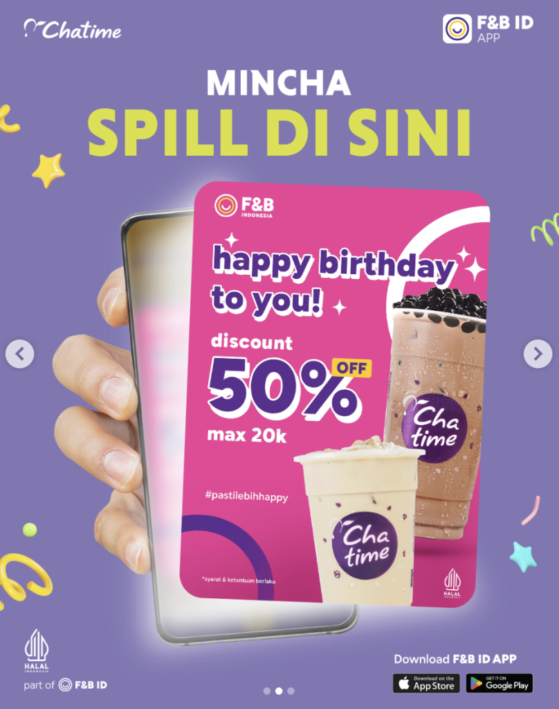 Nah, buat kamu pecinta minuman segar, Chatime punya kejutan manis spesial ulang tahunmu! 🧋🎉