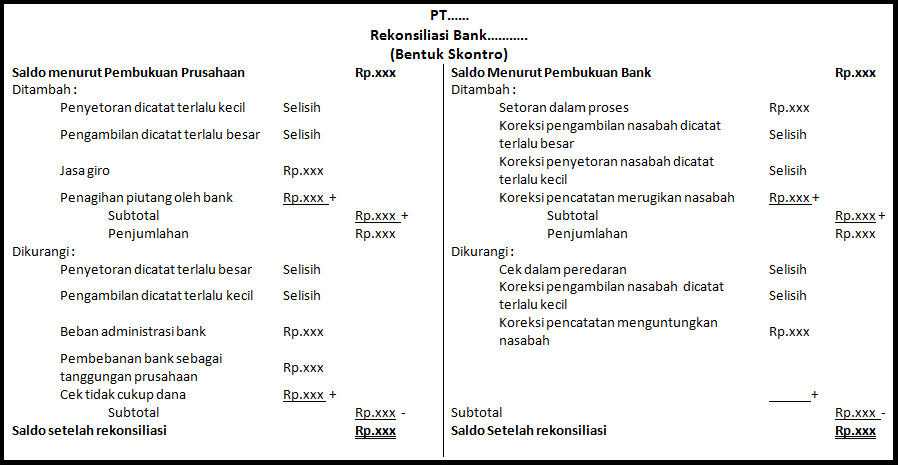 Berikut contoh penyajian rekonsiliasi bank dalam bentuk skontro: