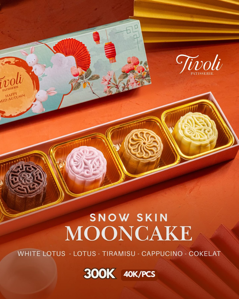 - Snow Skin Mooncake: Rp300.000 (8 pcs rasa White Lotus, Lotus, Tiramisu, Cappuccino, dan Coklat)