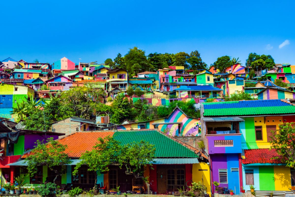 Kalau ingin wisata yang penuh warna, mampirlah ke Kampung Pelangi. Sesuai namanya, perkampungan ini dicat dengan warna-warni cerah pada setiap rumah warganya. Ditambah mural unik di dinding, suasananya langsung bikin ceria dan jadi spot favorit buat hunting foto.