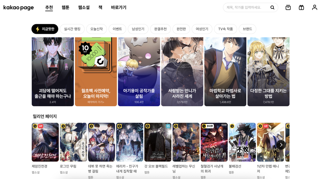 KakaoPage jadi platform bawaan Korea yang menyediakan berbagai macam manhwa dan web novel. Aksesnya mudah dan legal, dengan beragam judul populer yang lagi tren. KakaoPage juga nawarin fitur pembelian episode dengan sistem poin.