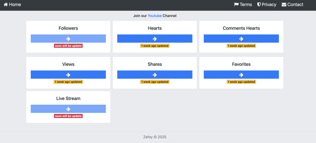 Namun, perlu dicatat: tidak semua fitur selalu tersedia setiap saat. Kadang ada layanan yang “mati sementara” atau muncul keterangan “Service is busy”. Ini biasanya karena server Zefoy sedang overload akibat banyaknya pengguna.